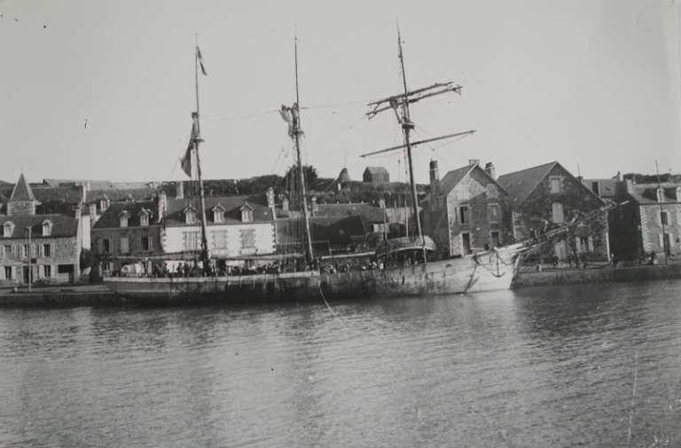 Trois-mâts Terre-Neuvas à quai avec doris sur le pont : le Léon ou un autre navire de grande pêche (collection Grimaud)Immatriculation
