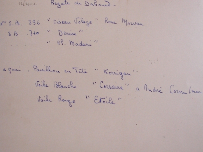 Légende : identification des bateaux en régate au port de Dahouët vers 1950 (collection Grimaud)Immatriculation