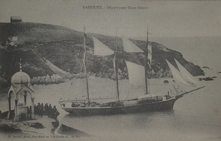Navire Terre-Neuvas en partance avec ses doris amarrés sur le pont avant (collection Grimaud)Immatriculation