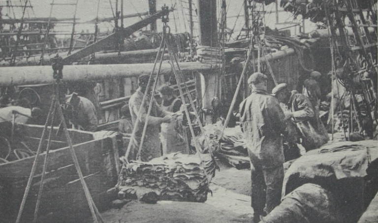 Pesée des morues à bord d'un navire morutier (collection Grimaud)Immatriculation