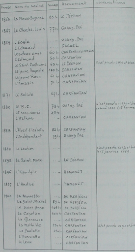 Tableau nominatif des bateaux armés au port de Dahouët entre 1865 et 1900 (Herbert)Immatriculation