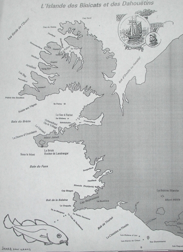 Carte des sites de pêche et de relache des Binicais et des Dahouëtins sur les côtes d'Islande (Atelier du Patrimoine)Immatriculation
