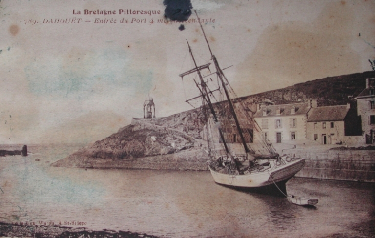 La goélette Kénavo (sister-ship de la Julie), à l'échouage pour carénage avec son lest de draille sur le quaiImmatriculation