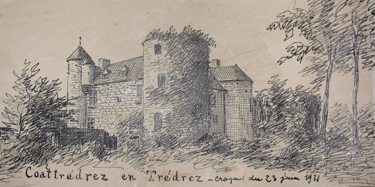 Vue générale du manoir de Coat-Trédrez depuis le sud-est, 23 juin 1931 (Henri Frotier de la Messelière / AD 22).Immatriculation