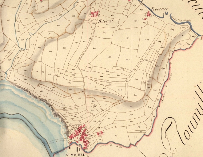Trédrez-Locquémeau. Extrait des plans cadastraux parcellaires de 1813 (AD 22). Territoire cédé en 1828 à la commune de Saint-Michel-en-Grève.Immatriculation
