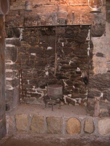 Le moulin : vue de la cheminée placée dans la partie logement du meunier (face aux meules).Immatriculation