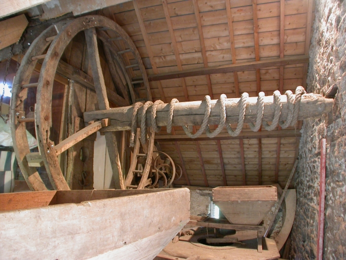 Arbre et roue destinés à lever les meules afin de les rhabiller.Immatriculation
