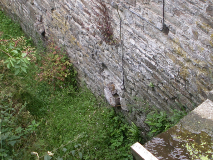 Le coursier et vestiges des arbres des deux roues hydrauliques.Immatriculation