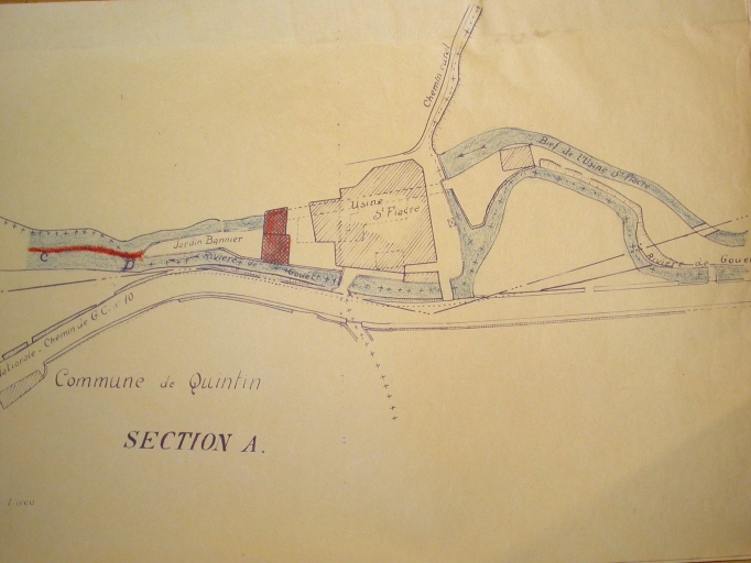 Moulin à papier de Saint-Fiacre, puis usine de blanchiment dite de Fumi-coton, puis distillerie de la Société des Alcools et Levures de l'Ouest, puis minoterie et usine de produits pour l'alimentation animale Le Men, actuellement maison (Quintin),