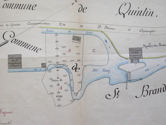 Moulins à foulon et à papier du Bras d'Argent, puis porcherie dite Elevage Quintinais, actuellement usine de produits agro-alimentaires Elquin (Saint-Brandan),