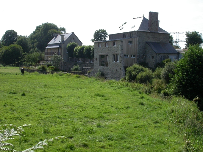 Vue générale sud-est du moulin et du logement (au fond).Immatriculation