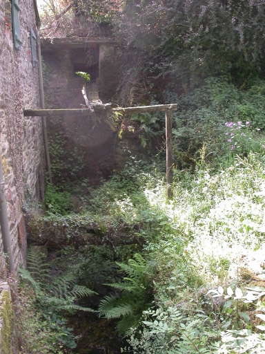 Vue générale de l'ancien coursier (et emplacement de l'ancienne chute d'eau). La roue hydraulique a disparu.Immatriculation