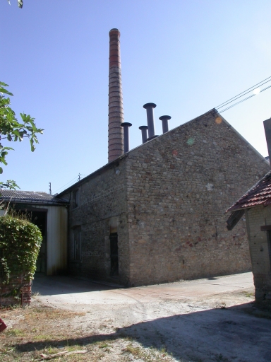 Atelier de fabrication et cheminée en briques haute de 40 m, angle sud-ouest.Immatriculation