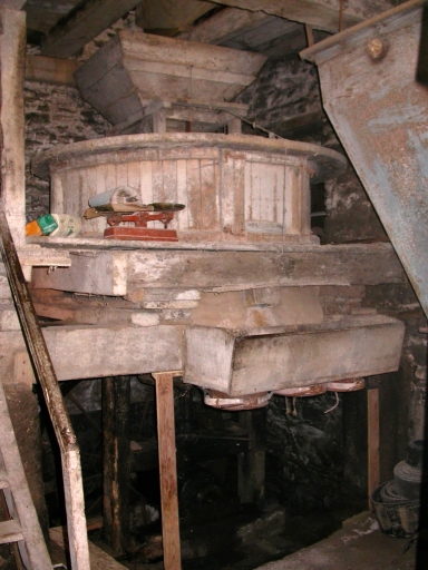 Vue intérieure du moulin : seconde paire de meules.Immatriculation