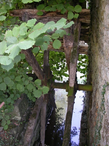 Le coursier et vestiges de la roue hydraulique verticale à aubes.Immatriculation