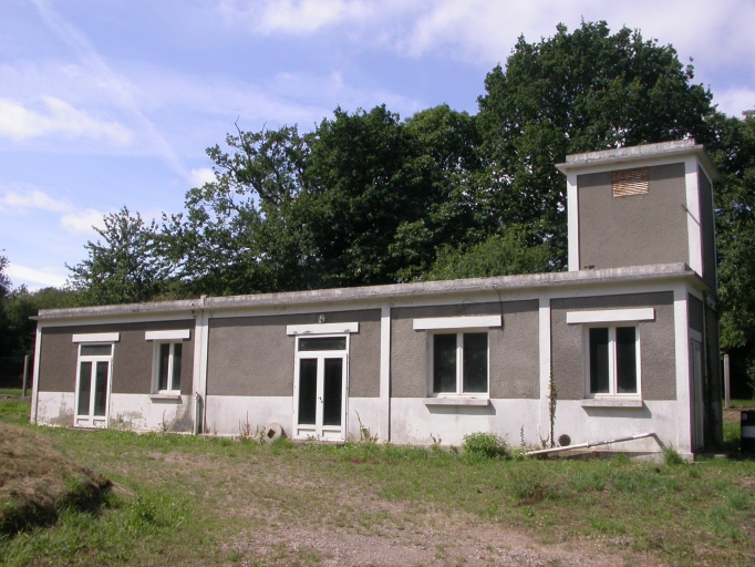 Usine des eaux, façade antérieure est. La partie droite abrite la salle des pompes et la partie gauche, la salle de traitement.Immatriculation