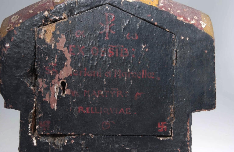 Buste-reliquaire de saint Théo : revers, détail du vantailImmatriculation