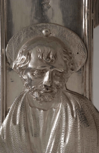 Croix de procession : détail tête de saint-PierreImmatriculation