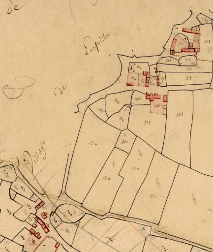 Parties sud et nord-est du village. Extrait du cadastre de 1824, section A 2 (A.D. Finistère, 3 P 076)Immatriculation