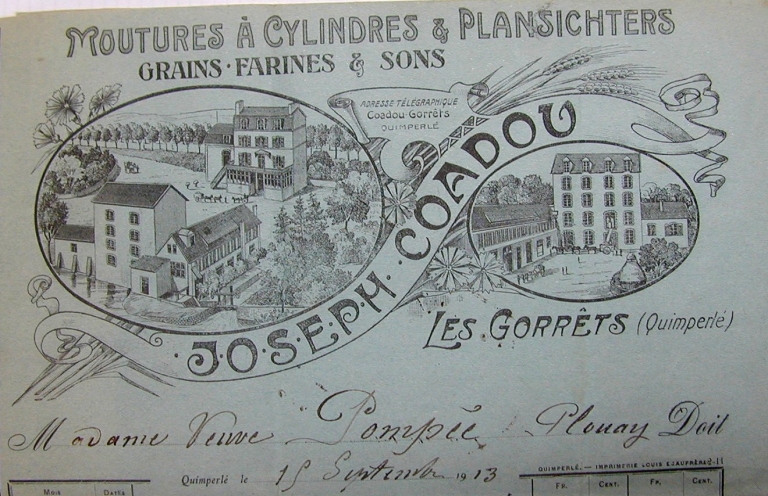 La minoterie en 1913. Vue générale de la vignette figurant sur le papier à lettres (Coll. Mortain)Immatriculation