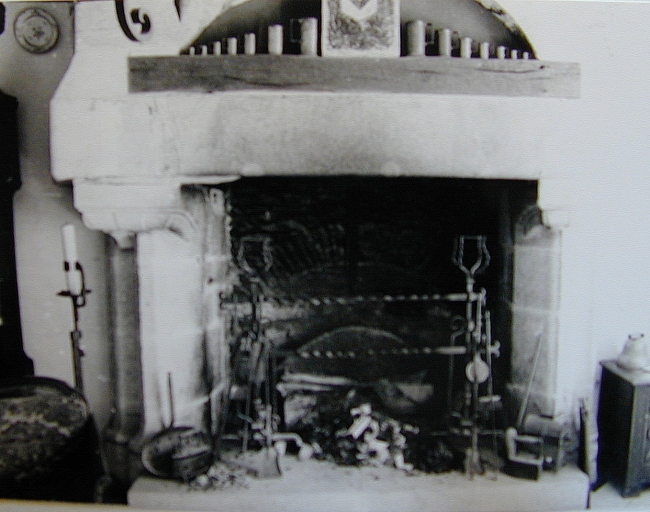 Rez-de-chaussé, pièce sud, mur sud, cheminée. Etat en 1974 (cl. M.M. Tugorès)Immatriculation