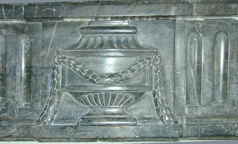 Etage, pièce nord, détail du linteau de la cheminéeImmatriculation