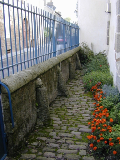 Anciens chasse-roues encastrés dans un muret séparant le pignon de la routeImmatriculation