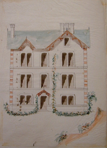 Elévation sud-est, projet par Gustave Bigot, 1862 (AE Quimper, 8 L fonds Bigot)Immatriculation
