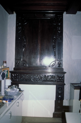 Salle est du rez-de-chaussée. Cheminée. Etat en 1996 (cl. A. Pennec)Immatriculation