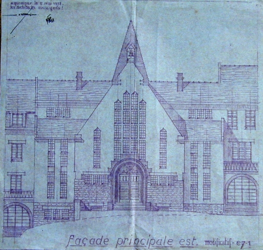 Chapelle, élévation est. Dessin Chaussepied et Pineau, 1933Immatriculation