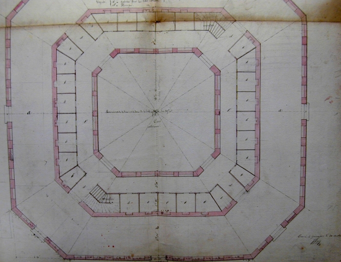 Premier projet (non réalisé). Plan. Joseph Bigot, architecte. Vers 1848 (A.D. Finistère, 122 J 11)Immatriculation
