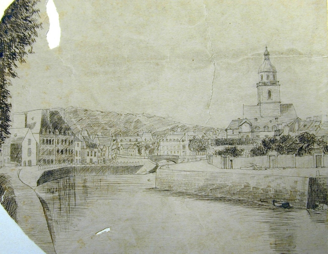 Le port, les quais et la basse ville. Dessin de Joseph Bigot, avant 1862 (A.E. Quimper)Immatriculation