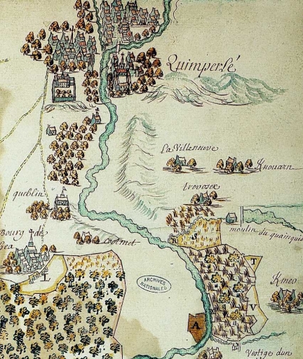 Représentation de la ville (1731). Détail du plan géométrique de la forêt royale de Carnoët par Jean-Baptiste Rober (A.N. Finistère, IV)Immatriculation