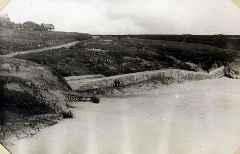 Vue des obstructions et défenses anti-débarquement de la plage de Trégana : mur antichars et portes Maginot, n° 89, rapport Pinczon du Sel. Livre IV, vers 1947, Service Historique de la Marine, BrestImmatriculation