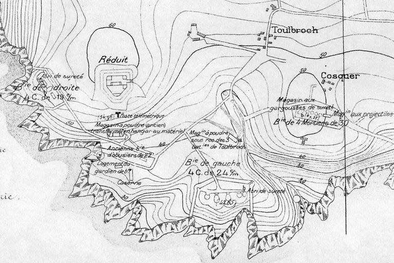 Détail du plan de l'ensemble fortifié de Toulbroc'h, Atlas des batteries de côte, n° 20 : côte de Brest, 1893, VincennesImmatriculation