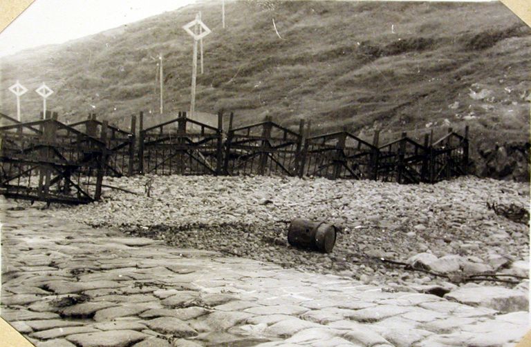 Vue des obstructions et défenses anti-débarquement de la plage du Petit Minou : portes Maginot, n° 97, rapport Pinczon du Sel. Livre IV, vers 1947, Service Historique de la Marine, BrestImmatriculation