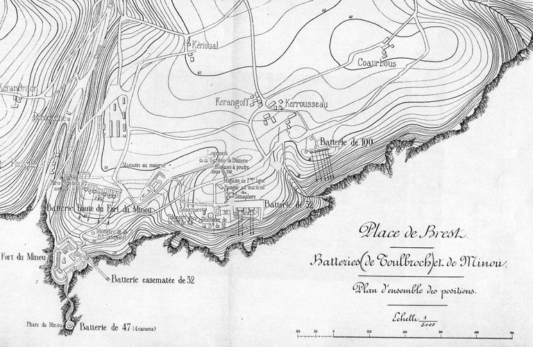 Plan de l'ensemble fortifié du Petit Minou, Atlas des batteries de côte, n° 20 : place de Brest, 1913, VincennesImmatriculation