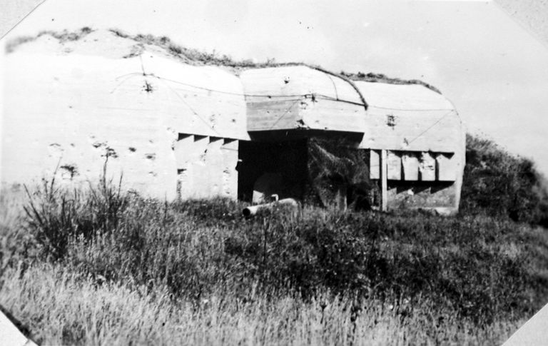 Vue de l'une des quatre casemates de la batterie des Rospects - Holtzendorff avec son canon de 15 cm (extrait du rapport Pinczon du Sel, Livre IV, photographie n° 104, 1947-1948)Immatriculation