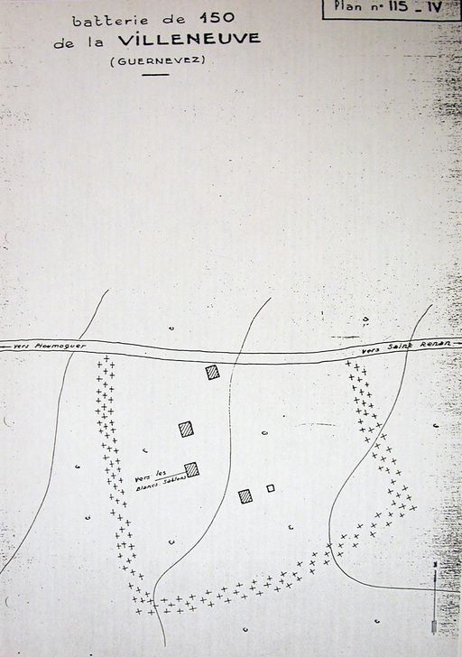 Plan de la batterie lourde de Villeneuve, n° 115, rapport Pinczon du Sel. Livre IV, vers 1947, Service Historique de la Marine, BrestImmatriculation