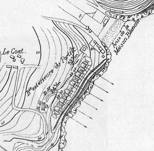 Batterie extérieure (2 canons de 32 cm modèle 1870-1879, 4 canons de 24 cm modèle 1870), 300 m à l'Est du fort Le Coat, Maison Blanche, Le Portzic (Brest),
