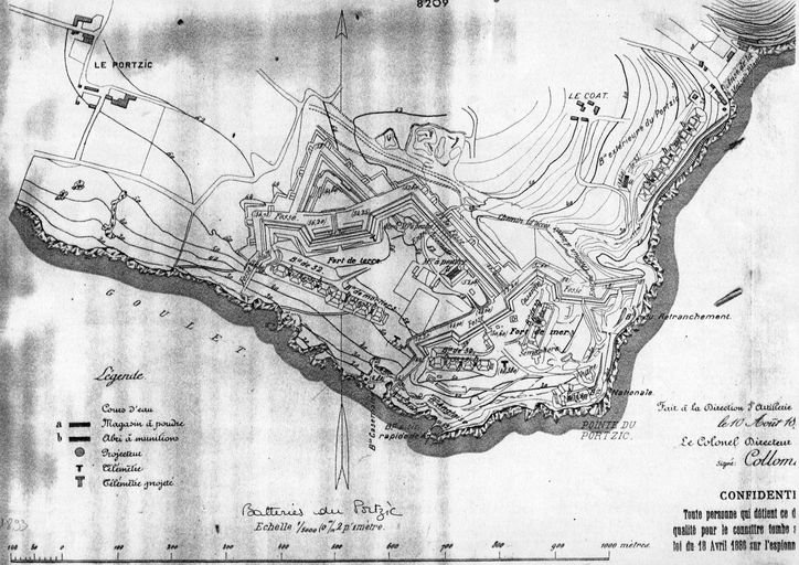 Plan de l'ensemble fortifié du Portzic, Atlas des batteries de côte, n° 20 : côte de Brest, 1893, VincennesImmatriculation