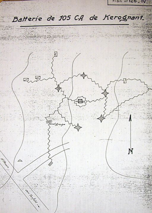 Plan de la batterie antiaérienne de Kerognan, n° 126, rapport Pinczon du Sel. Livre IV, vers 1947, Service Historique de la Marine, BrestImmatriculation