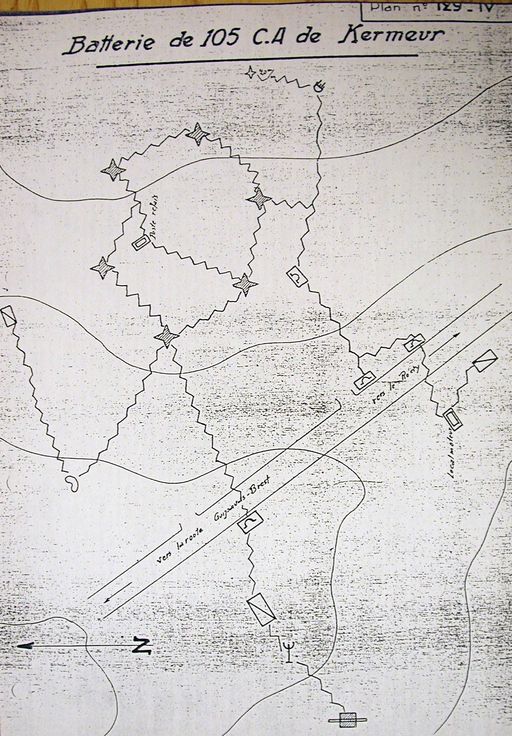 Plan de la batterie antiaérienne de Kermeur, n° 129, rapport Pinczon du Sel. Livre IV, vers 1947, Service Historique de la Marine, BrestImmatriculation