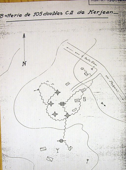 Plan de la batterie antiaérienne de Kerjean, n° 130, rapport Pinczon du Sel. Livre IV, vers 1947, Service Historique de la Marine, BrestImmatriculation