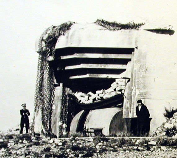 Vue de l'un des quatre bunkers - casemates pour canon de 164,7 mm, extrait du rapport Pinczon du Sel, vers 1946-1947Immatriculation