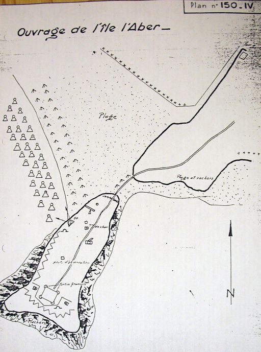 Plan de l'ensemble fortifié de l'île de l'Aber, n° 150, rapport Pinczon du Sel. Livre IV, vers 1947, Service Historique de la Marine, BrestImmatriculation