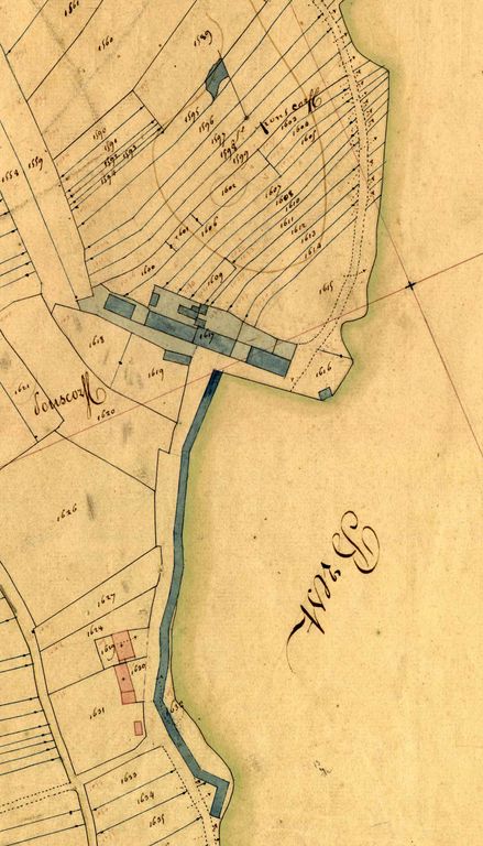 Plan de situation de l'ensemble fortifié de Pont Scorff, extrait du cadastre ancien dit Napoléonien, vers 1840, Archives Départementales du FinistèreImmatriculation