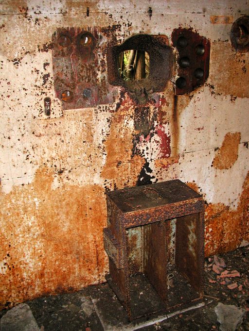 Vue de la chambre de tir : affût pour mitrailleuse (état en 2003)Immatriculation