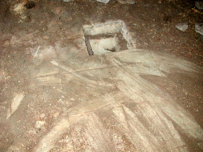 Vue de la pièce de vie - chambre de troupe : dalle en béton imitant un carrelage (état en 2003)Immatriculation