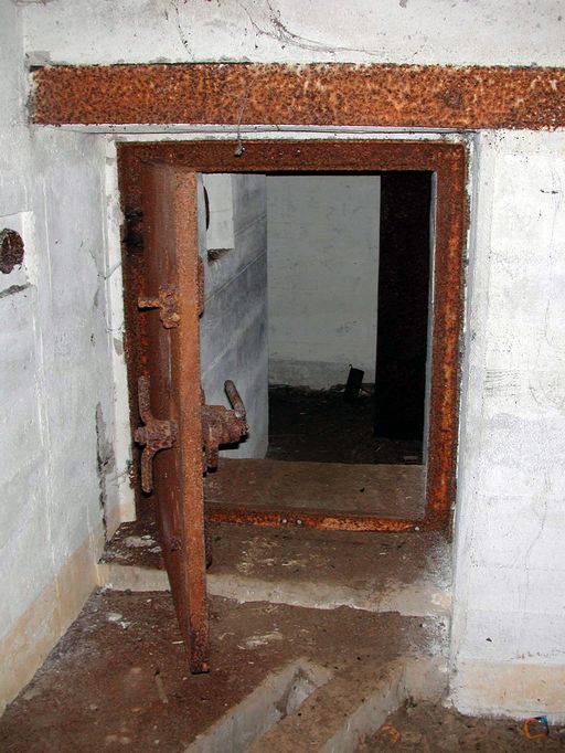 Vue de la casemate de type 505 face au Hildy : porte blindée d'étanchéité entre la chambre de tir et le sas d'entréeImmatriculation